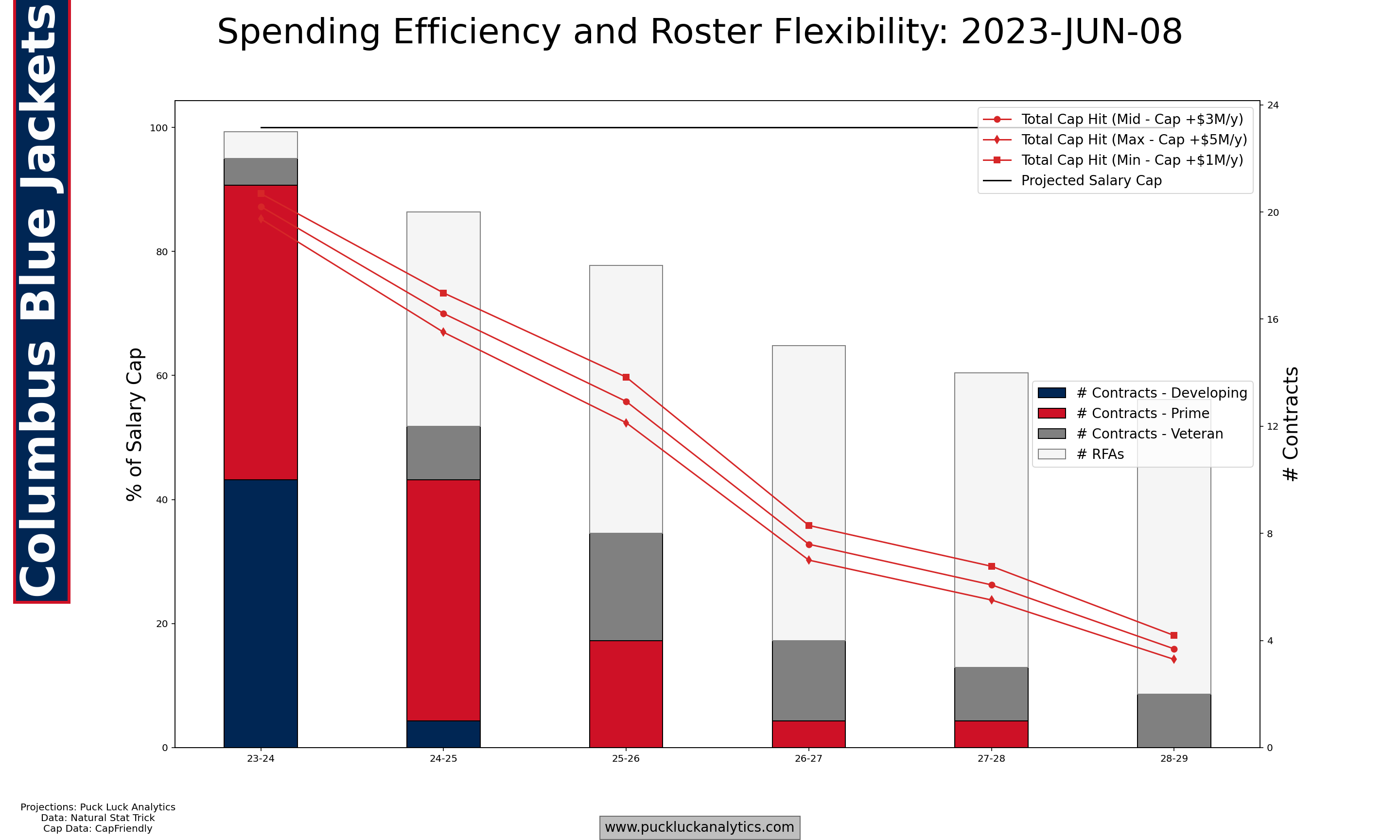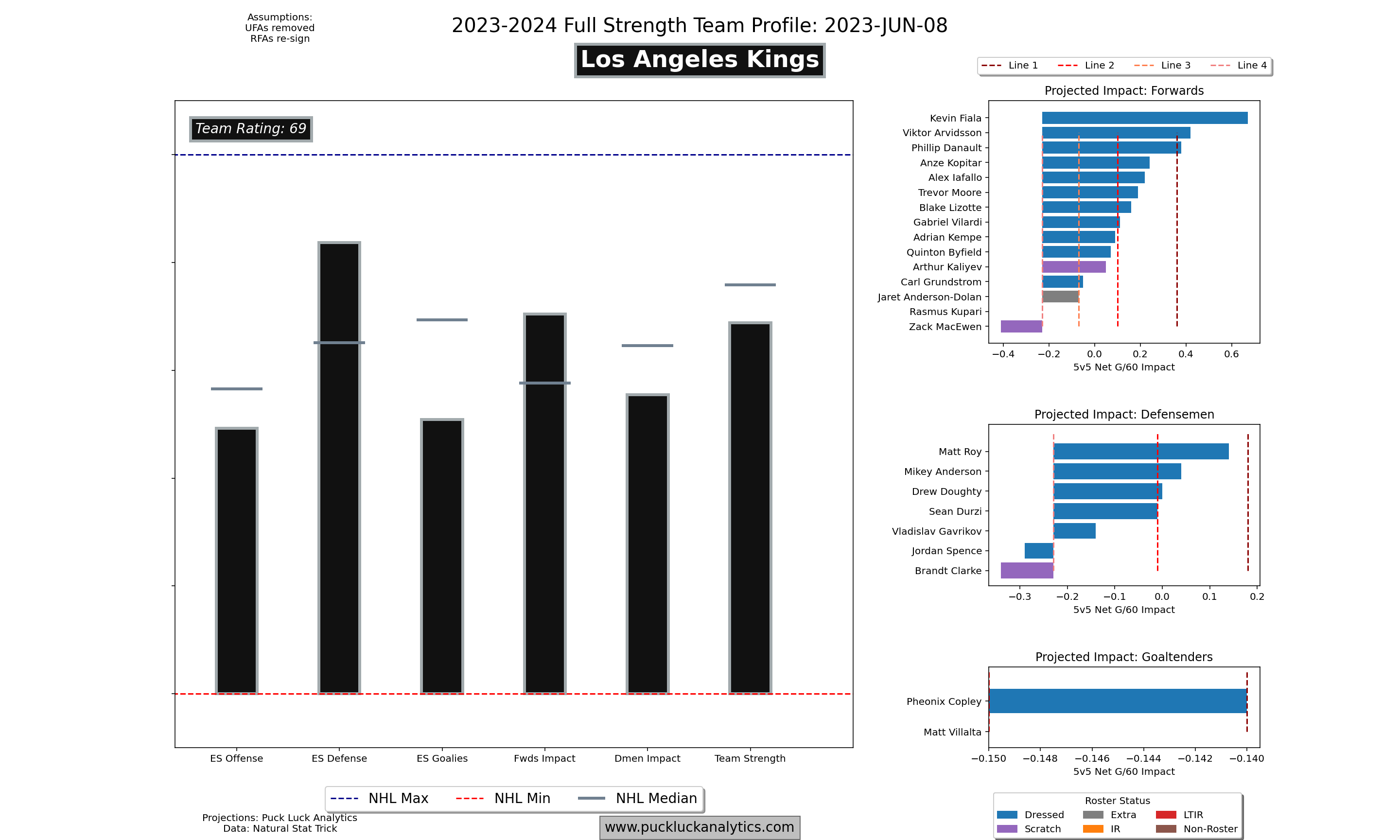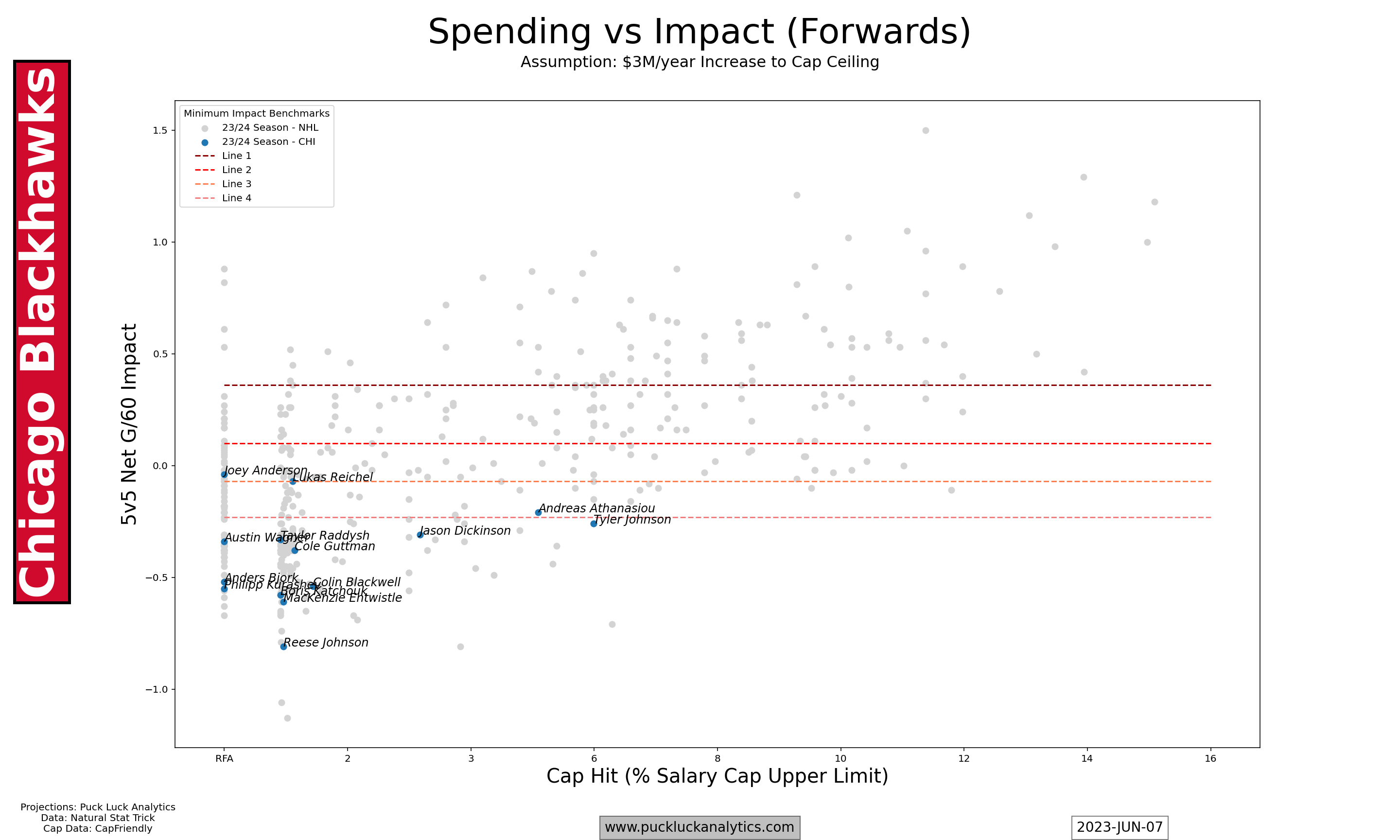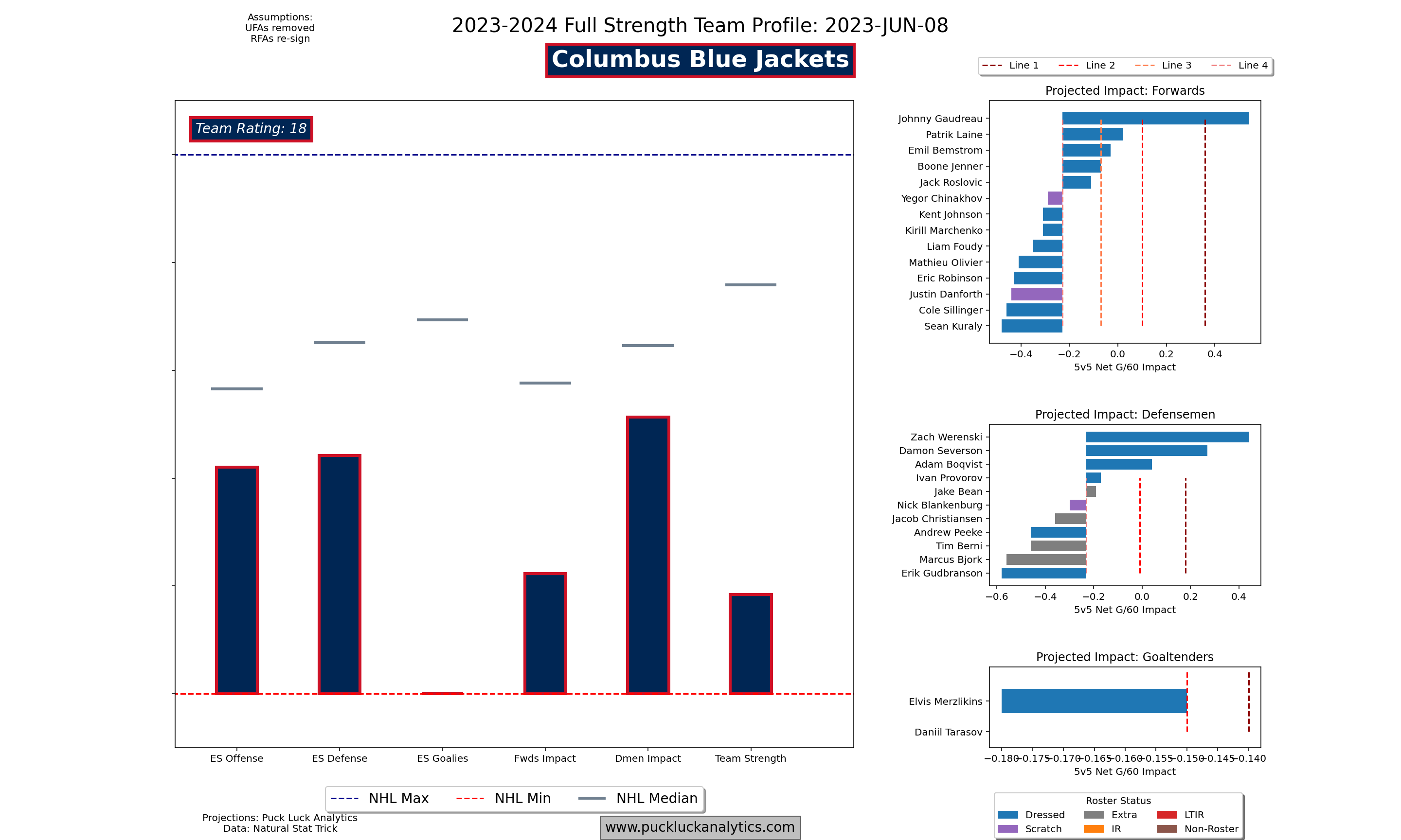 - 23/24 Team Profiles: Find roster profiles and cap/roster projections here. Additional team plots like cap efficiency and lineup viz are available on the team pages for members.