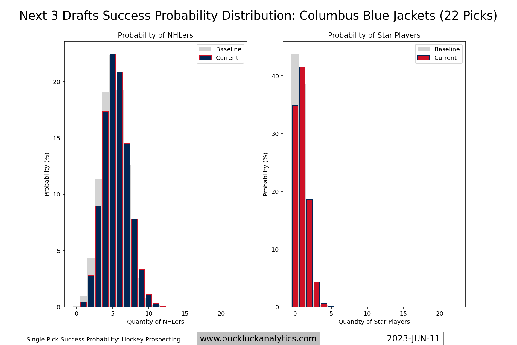 It’s a start, but the road ahead will be a difficult one. The bad news is that the roster needs a lot of improvement to be considered a contender and they don’t have a lot of cap space remaining to continue upgrading. The good news is that the Blue Jackets prospect pool is among the best in the league (ranked #1 by Hockey Prospecting) and they had also accumulated some extra draft capital.
