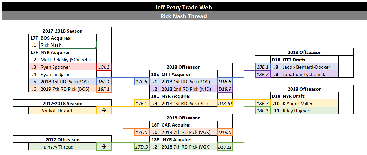 The 2018 offseason saw some big name defensemen on the move and some star power added to the Jeff Petry trade web as a result. There were also a few draft day trades that connect some of the threads from previous chapters.