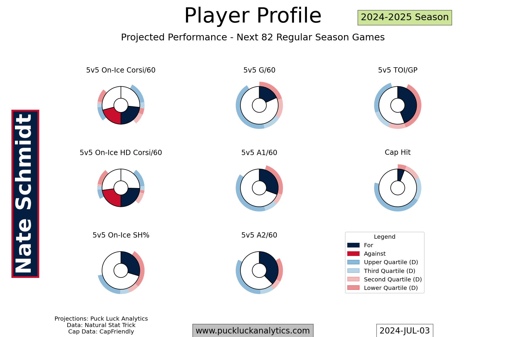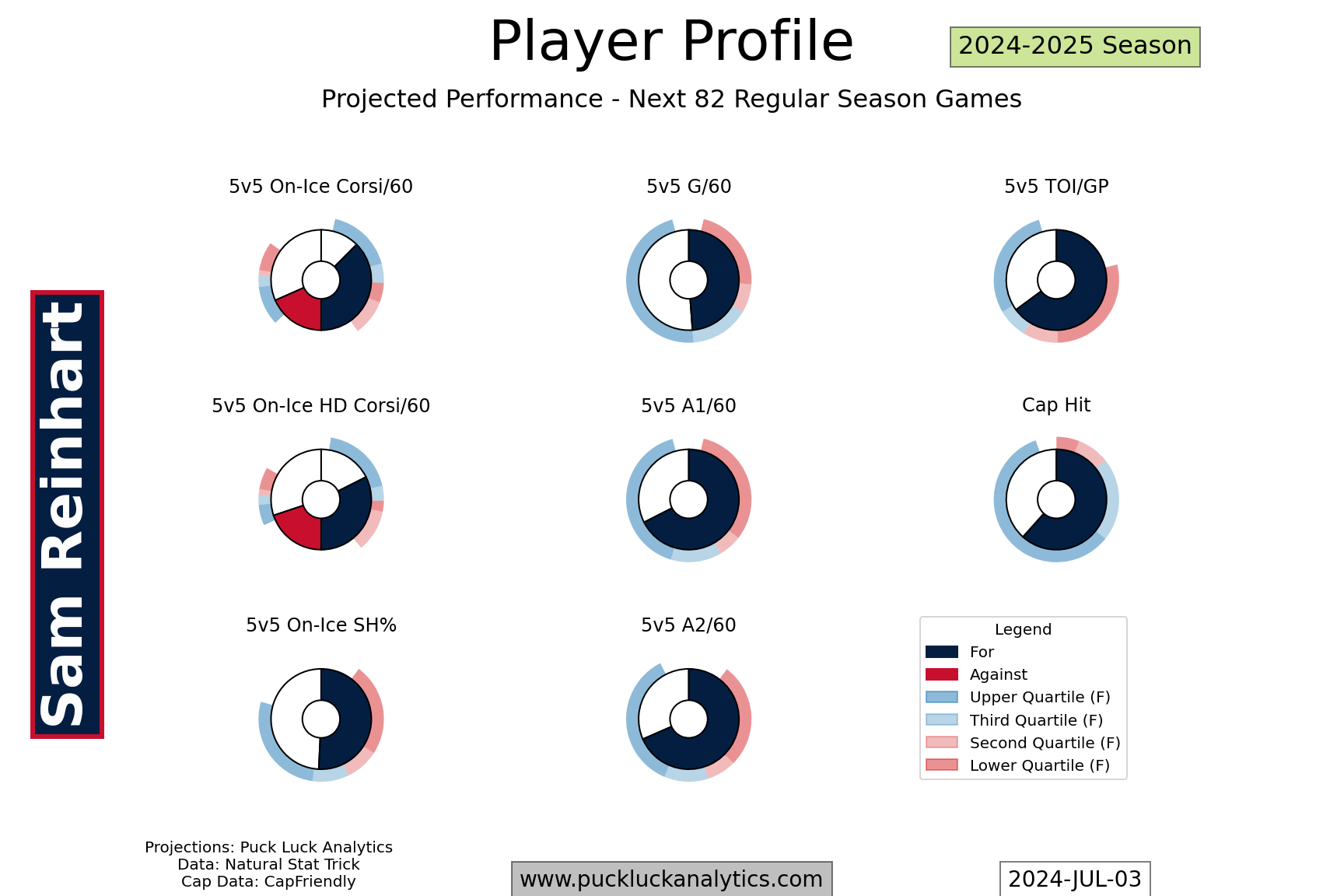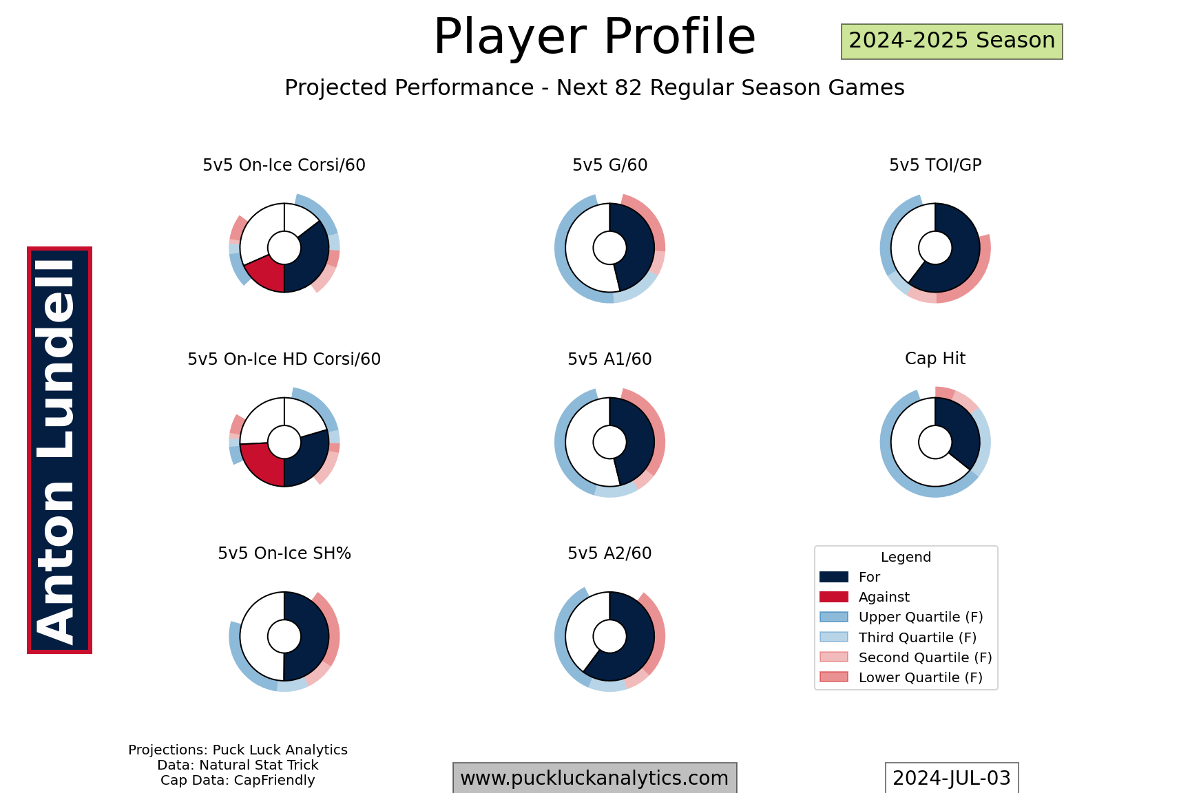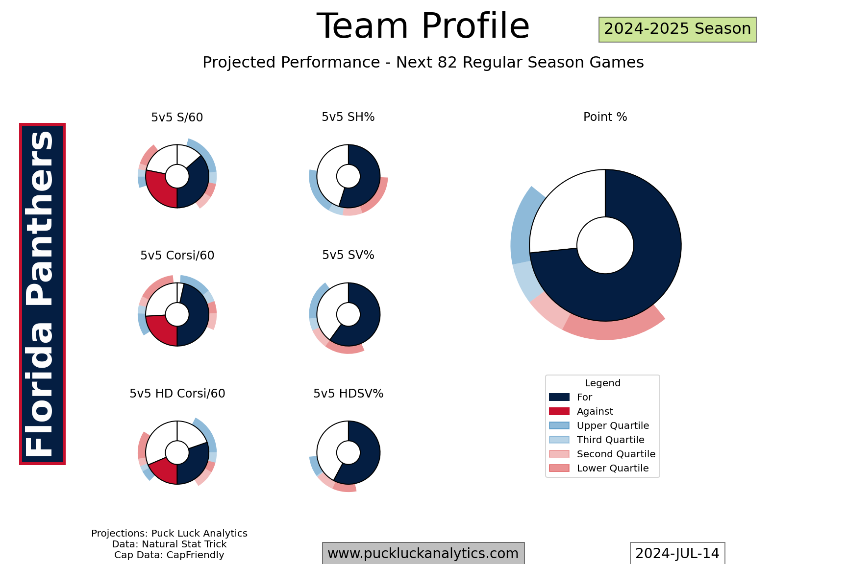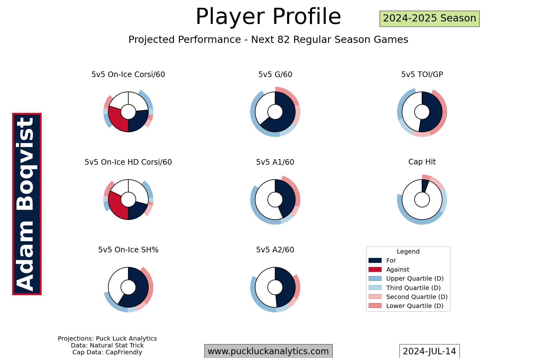 The Panthers should have every reason to believe they can repeat as cup champions with their restocked roster. They’re projected to be among the top 8 teams in the league again in 2024-2025, underpinned by some very strong projected possession metrics. Their defense corps will be an area to watch. If Boqvist isn’t able to step into the hole on the second pair, filling that hole could become the Panthers’ top trade deadline priority.