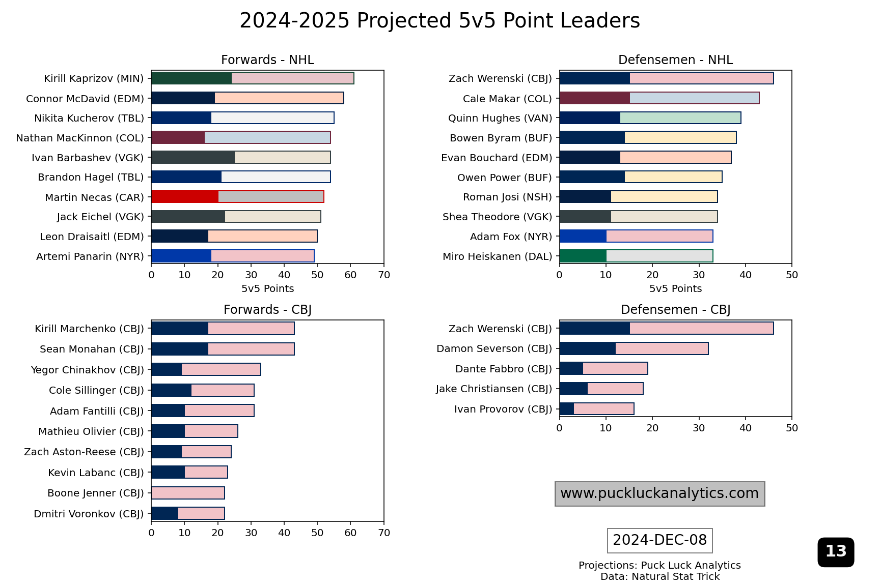 Waddell seems to have re-prioritized building around the incoming cohort. Kirill Marchenko is currently projected to lead the team in 5v5 points this season and we see a bunch of forwards in the 20-24 age range having an noticeable NHL impact this season. This group is going to improve as they move into their prime years and look like an excellent base for a competitive cohort.
